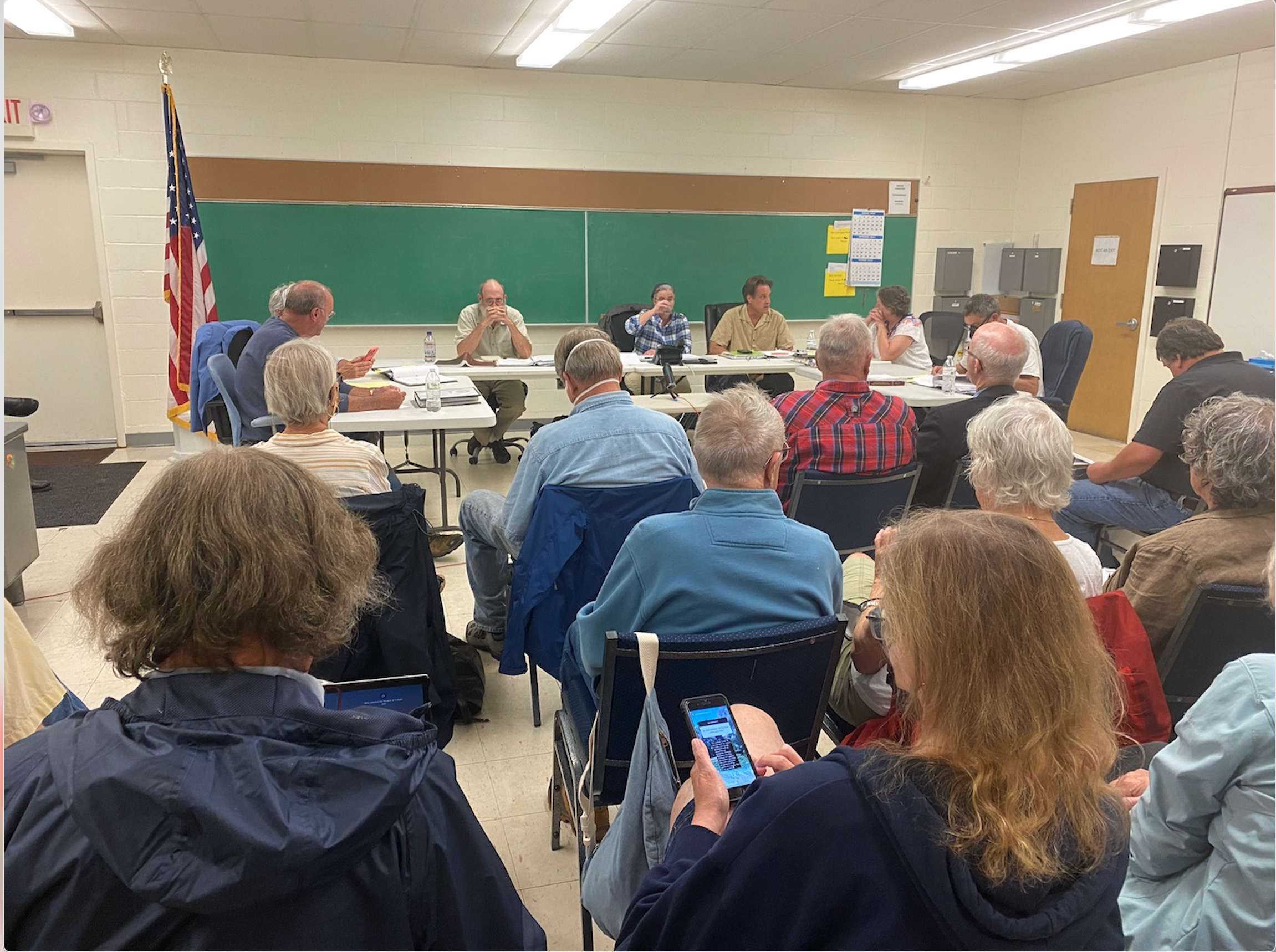 Why wouldn’t one have all the chairs set up or make sure the zoom equipment is working before the meeting started. Or for that matter knowing as they do that this project has attracted a great deal of attention because of its impact on our aquifer and the importance of the ground water protection ordinances to all, why wouldn’t they move the meeting ahead of time to another location so that everyone could have a seat and feel safe going to a public board meeting