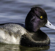 I am thrilled to see small ducks that wouldn’t be present here for the rest of the year, because they usually nest well to the north of us during the breeding season. They are only passing through to warmer climes for overwintering, then later return. Such a species is the lesser scaup, or “bluebill.”
